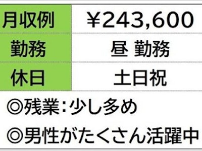 ☆月収例 243,600円♪ 【所定168h×1200円+残業28h×1500円】