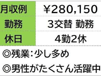 週 5日の所定休日ごとに勤務時間が変わる【3交替】勤務お仕事です。