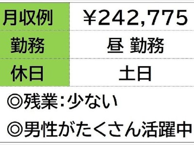 ☆月収例 242,775円♪〈所定168h×1300円+残業15h×1625円〉