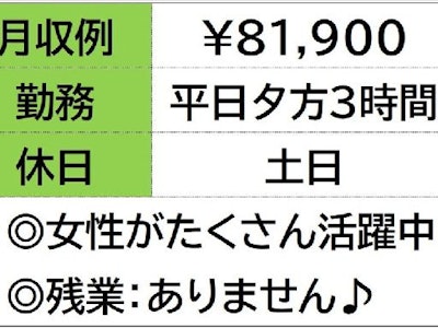 週5日、1日当たり実働3時間のパートタイムワークで活躍♪