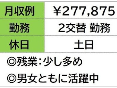 週 5日の所定休日ごとに勤務時間が変わる【2交替】勤務お仕事です。