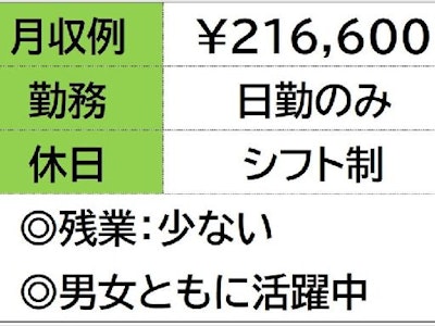 ☆月収例 216,600円♪〈所定168h×1200円+残業10h×1500円〉