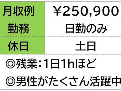 ☆月収例 250,900円♪〈所定168h×1300円+残業20h×1625円〉