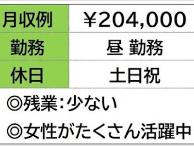 ☆月収例 204,000円♪ 【所定157.5h×1200円+残業10h×1500円】