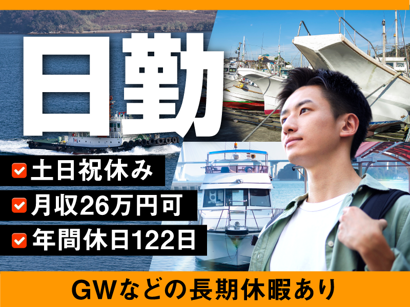 【20代,30代活躍中】<国東市>【日勤/土日祝休み×月収26万円可♪】舟艇などの開発補助!年間休日122日◎仕出し弁当注文OK♪20代~30代男性活躍中!【履歴書不要☆オンライン面接OK】【入社キャ