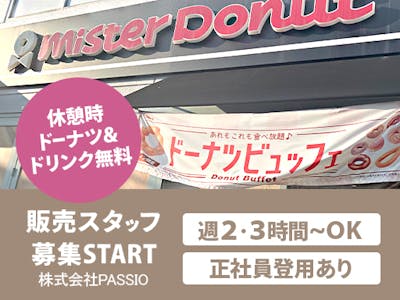 【しゅふ活躍中】週2/1日3時間~OK◎スキマ時間にサクッと稼げる◎休憩時間はドーナツやドリンク無料◎さらに社割まで!!正社員登用もあります!
