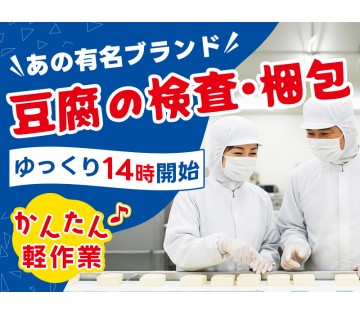 <南丹市>【ゆっくり14時スタート!】簡単な軽作業☆あの有名なブランド豆腐の検査や梱包♪残業少なめ◎【履歴書不要☆オンライン面接OK】【入社キャンペーン実施中!】