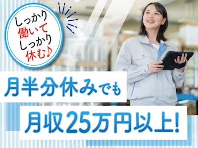 月半分が休みで月収25万超え☆休み多めで自分時間も充実♪【クレカの製造・軽作業】子ども手当・入学祝い金・退職金制度などライフスタイルに合わせた福利厚生充実☆