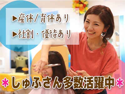 【経験を活かして働く】扶養内歓迎*シフト週2×4h~OK!≪美容師・スタイリスト≫★ノルマや指名なし!30~40代しゅふさん活躍中*くるみんマーク認定