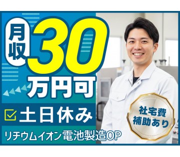 <加西市>【月収30万円可×社宅費補助あり】土日休み☆車載用リチウムイオン電池の製造オペレーター♪【履歴書不要☆オンライン面接OK】【入社キャンペーン実施中!】