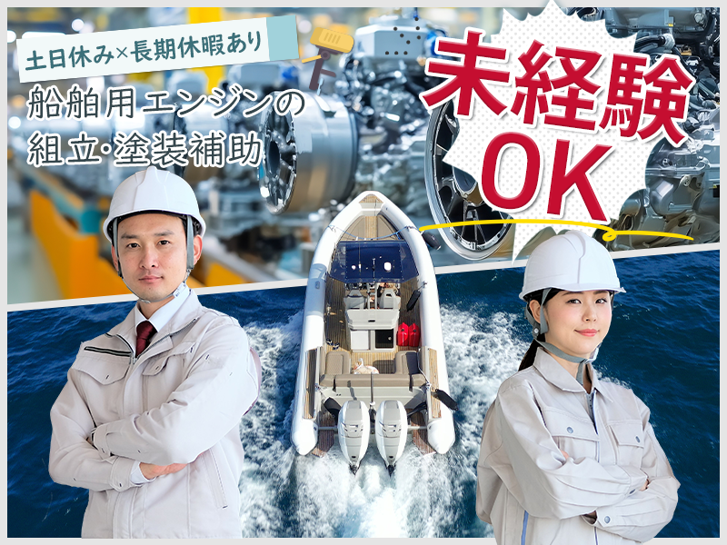 【20代,30代活躍中】【土日休み×長期休暇あり!】\船の外付けエンジン製造/未経験歓迎♪車・バイク通勤OK◎若手~ミドル男女活躍中