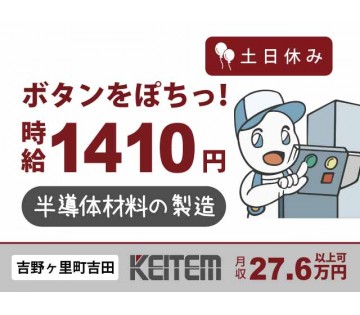重い物なし 【電子部品の材料】 20~40代活躍中/未経験歓迎のセット・ボタン操作/空調完備の土日休み/2交替制/月収27.6万円以上可