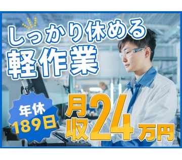 12月祝金5万円&ボーナス★【月収24万円可×月の半分お休み】人気の軽作業◆電子部品の製造・検査/残業ほぼなし
