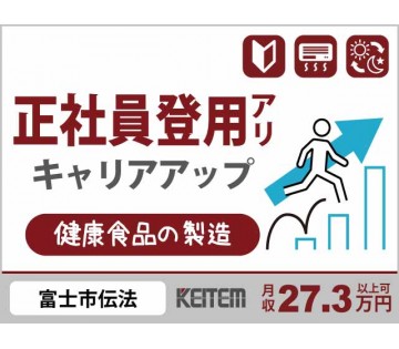 【健康食品製造】20~50代半ばが活躍中/残業なしでも月収27.3万円以上可/正社員雇用のチャンスもあり/冷暖房完備/シフト休日または土日休み/月収27.3万円
