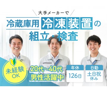 ★祝金総額7万円★【未経験×土日祝休み】大手メーカーでの冷凍機器の組み立てのお仕事♪年間休日126日★【履歴書不要☆オンライン面接OK】【入社キャンペーン実施中!】