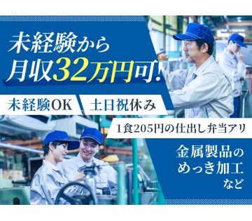 【20代,30代活躍中】【月収32万可!】土日祝休み☆未経験大歓迎☆めっき加工・検査