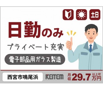 【電子部品用ガラス製造】20~50代半ばが活躍中/今ならお仕事中ずっと実質時給1700円/機械補助や検査/日勤/土日休み/月収29.7万円