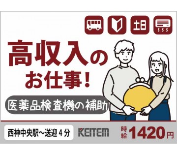 【医薬品検査機の補助】選べる日勤・夕勤・夜勤の専属シフト/未経験OK/土日休み/送迎あり/時給1420円/月収30.7万円