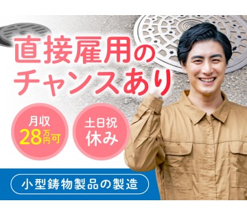 マンホールの製造・ラインへの砂型セット作業★月収28万円可◎土日祝休み