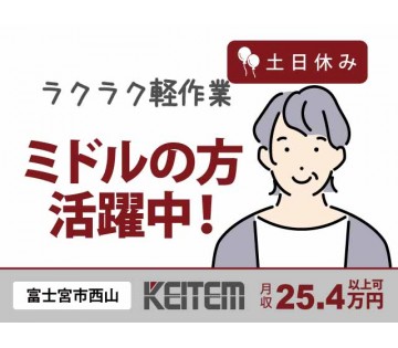 時給 1,097~1,240円土曜勤務時:時給+20円【休日・休暇】・土日祝休み(長期休暇以外の期間)・日曜、祝日(長期休暇期間)・年末年始・有給休暇【通勤方法】・車通勤OK・自転車通勤OK【応募~採用まで】[1] 応募フォーム/お電話よりご応募[2] 採用担当より連絡[3] 面接実施[4] 採用決定・内定までは平均1~2週間ほど・面接は1回(30分程度)です・WEB面接も対応可能・ご都合に合わせて 面接場所・日時を決定します・面接は夜間と土日も対応可能です!【見学について】職場見学は受け付けておりません。ご了承ください。