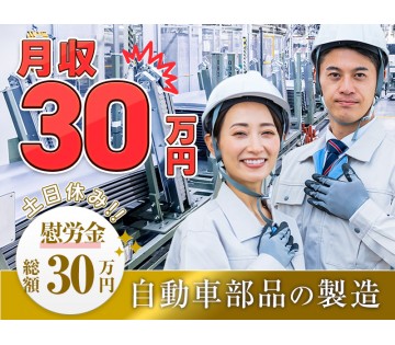 【今なら慰労金総額30万円支給☆】月収30万円可!自動車部品の製造