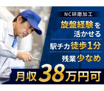 【20代,30代活躍中】【月収38万円可!経験活かせる◎】NC研磨・旋盤経験を活かせる◎NC研磨加工のお仕事!日勤/土日祝休み/残業少なめ/駅チカ【履歴書不要☆オンライン面接OK】【入社キャンペーン実