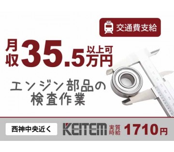 【20代,30代活躍中】未経験から正社員 【部品の検査作業】 20~30代の若手活躍中/実質時給1710円の空調完備職場/皆勤手当ありの研修充実/バイク通勤OK/月収35.5万円