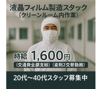 派遣社員検品・検査・調整、マシンオペレーター、清掃・洗浄