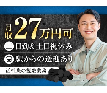 【日勤専属◎】月収27万円可★活性炭の製造業務!土日祝休み♪年休120日