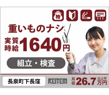 【軽い医療品の組立・検査】20~40代活躍中/未経験から実質時給1640円で高収入/冷暖房完備/はんだ付けや微細加工/土日休み/重い物なし/月収26.7万円