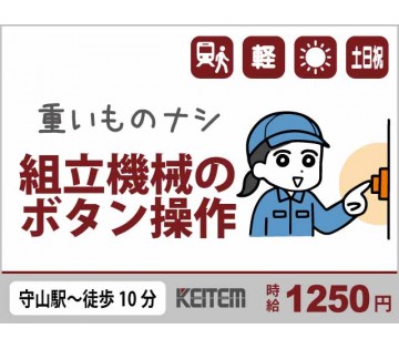 【20代,30代活躍中】重い物ナシ 【電源機器の操作】 20~30代の若手活躍中/部品をセットして品番を入力/守山駅から徒歩10分の日勤/要製造経験/月収21.2万円
