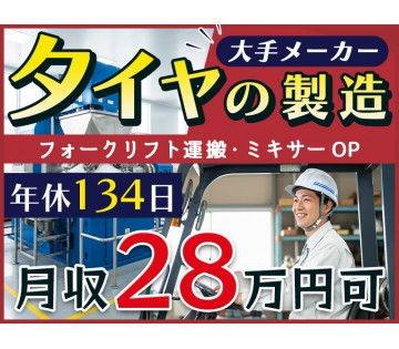 <員弁郡東員町>【月収28万円可】年休134日!大手メーカーでタイヤの製造◎ミキサーオペレーター・フォークリフト運搬【社宅費全額補助】【履歴書不要☆オンライン面接OK】【入社キャンペーン実施中!】