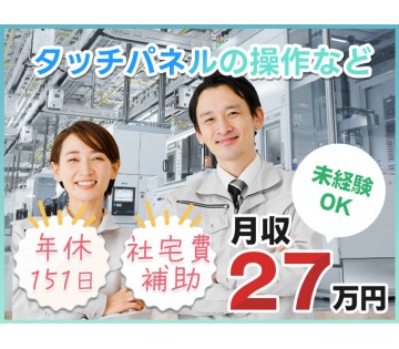 <湖西市>【年休151日×月収27万円可!】社宅費補助あり☆バッテリー蓄電池工場でタッチパネル操作や検査など♪【履歴書不要☆オンライン面接OK】【入社キャンペーン実施中!】