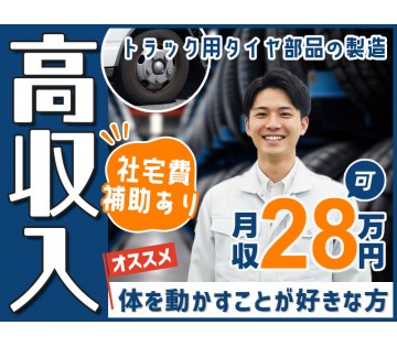 <員弁郡東員町>【高収入】月収28万円可&年休134日!タイヤ部品の製造・運搬!車通勤OK♪社宅費補助あり◎体を動かすことが好きな方にオススメです!【履歴書不要☆オンライン面接OK】【入社キャンペーン