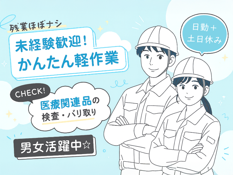 人気のカンタン軽作業☆未経験OK!医療関連品などの検査・バリ取り♪残業ほぼナシで日勤&土日祝休み