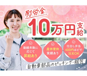 【慰労金10万円支給】日勤&土日休み◎自動車部品のピッキング・梱包☆月収26万円可