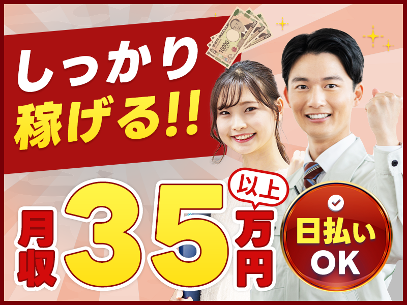 時給1350円~月収例:233,000円(時給×8H実働×22日稼働+各種手当)※基本残業なし※こちらの求人は日払いまたは週払いの求人です【交通費】交通費支給あり上限30,000円まで支給 ※会社規定有り
