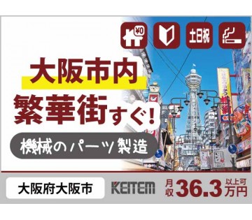 【機械パーツ加工・仕上げ】20~50代半ばが活躍中/繁華街近くで遊ぶところイッパイ/時給1600円/土日祝休み/残業多め/月収36.3万円