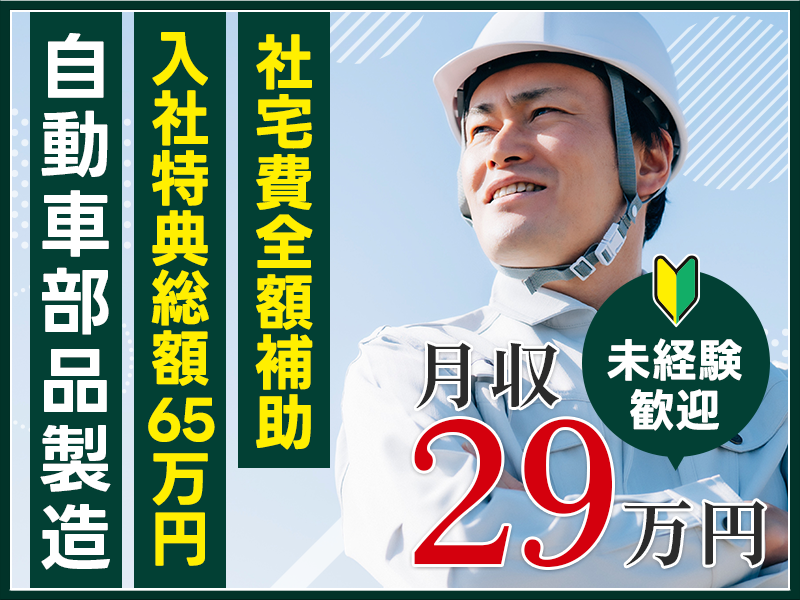 <栃木市>【入社特典総額65万円】月収29万円可!社宅費全額補助&即入寮可◎自動車エンジンの組立て◎メーカー直接雇用のチャンスあり♪【履歴書不要☆オンライン面接OK】【入社キャンペーン実施中!】