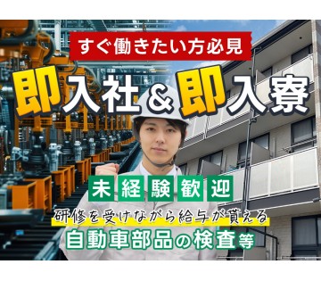 【20代,30代活躍中】<浜松市中央区>【即入社&即入寮OK】すぐ働きたい方必見!研修を受けながら給与が貰える!未経験歓迎◎自動車部品の製造や検査【履歴書不要☆オンライン面接OK】【入社キャンペーン実