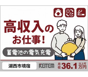 実質時給1750円 【蓄電池の充電】 20~40代活躍中/200g程度の軽いバッテリー扱い/4日毎に2連休の好待遇/一時金あり/月収36.1万円