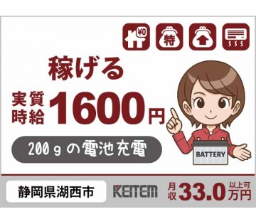 寮費無料 【電池の充電作業】 20~40代活躍中/重い物なしの2交替シフト/4日毎に2連休でリフレッシュ/昇給あり/月収33万円