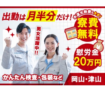 津山市中心部<時給1290円×土日祝休み>高時給でしっかり稼げる日勤のみの求人!未経験の方も活躍中♪