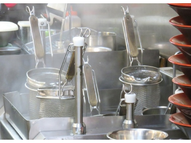 (3)食券を預かり、お伺い「麺の固さ・スープの濃さ・脂の量をお選びください」