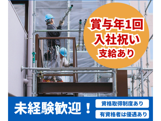 \好調により増員募集!/【昇給・賞与・資格手当あり】髪色・ピアス自由♪未経験は資材運びなどの手元作業からのスタート♪資格取得制度完備で異業種からの転職、未経験からのチャレンジ大歓迎!【経験者優遇あり】