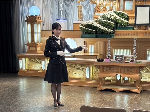館内のご案内や葬儀の進行補助、食事の際の配膳、館内清掃等。