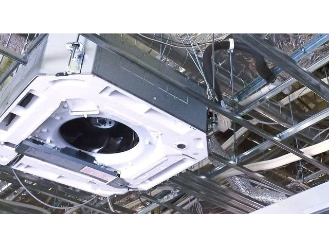 近年は、学校などの公共施設や店舗・工場など業務用エアコン設置施工中心に行っています。