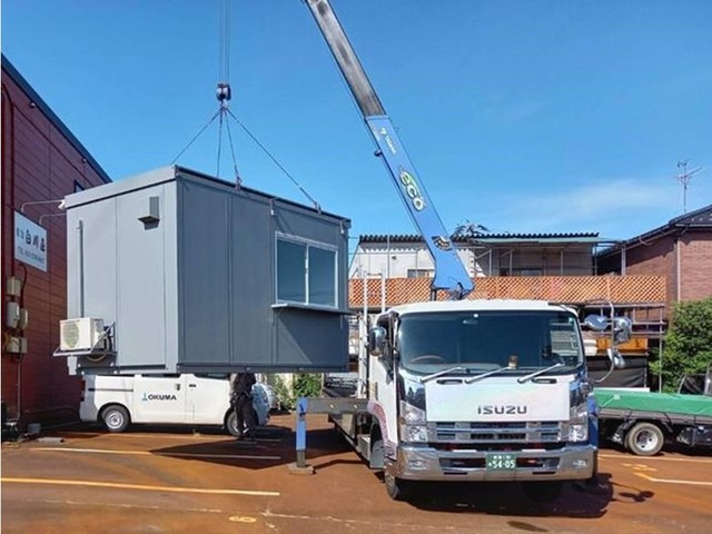 ・ユニットハウスをトラック(4t)に積込みます(クレーン使用/手作業なし)