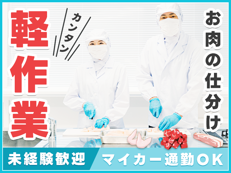 <鹿児島市>【カンタン軽作業】未経験歓迎☆お肉の仕分け!人気の日勤♪マイカー通勤可&駐車場完備!【履歴書不要☆オンライン面接OK】【入社キャンペーン実施中!】