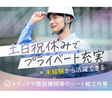 【未経験から活躍できる】トラックや建設機械等のシート組立作業!土日祝休みでプライベート充実